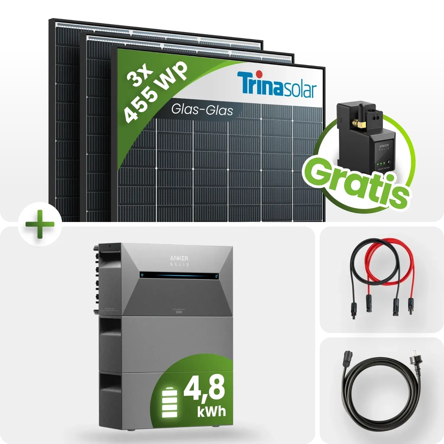 Balkonkraftwerk mit Speicher Anker Solarbank 2 – Trina 455Wp Black Frame