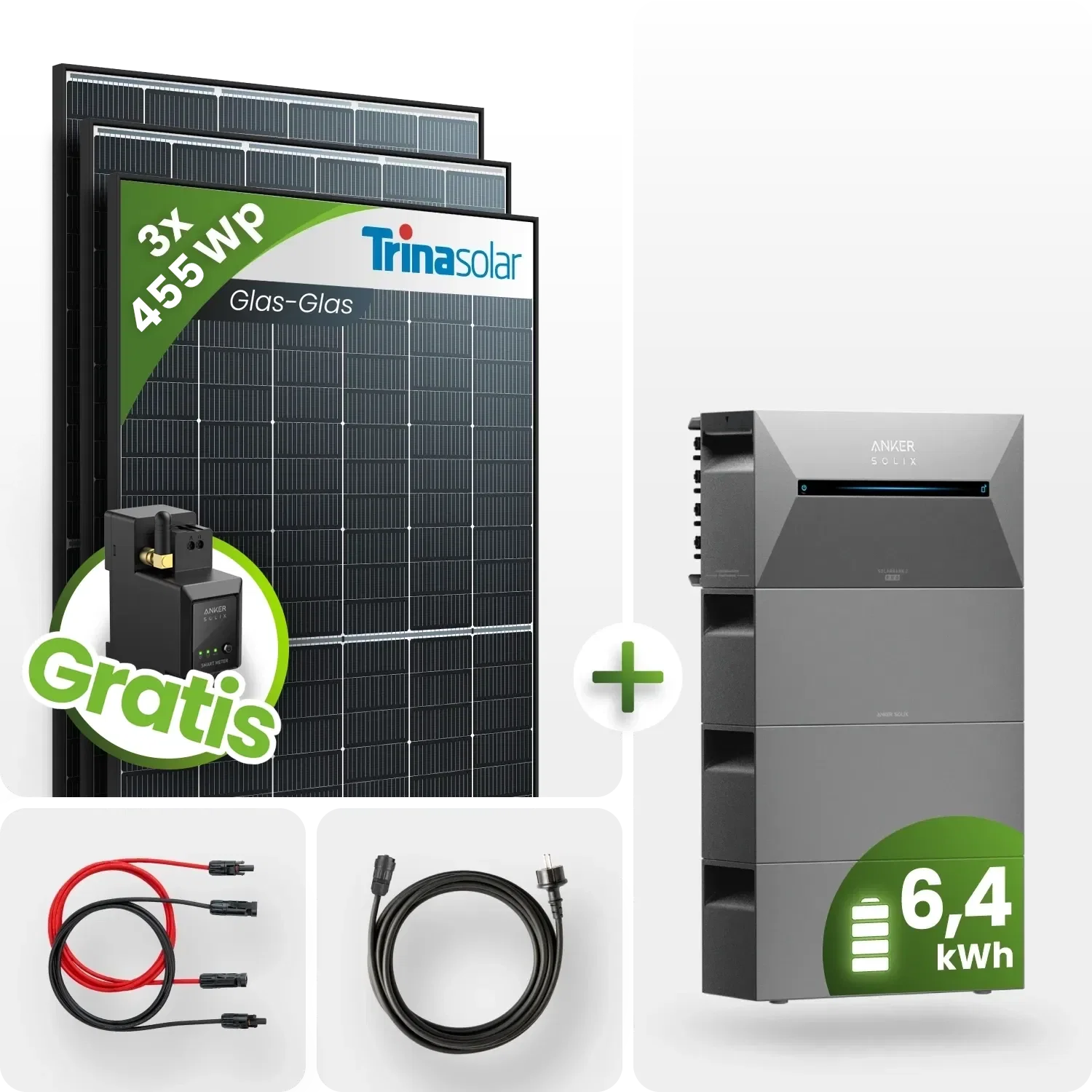 Informationen zum Produkt PVST5281.4 - 1365Wp Balkonkraftwerk 6,4kWh Speicher Anker Solarbank 2 –3x455Wp Trina Black Frame
