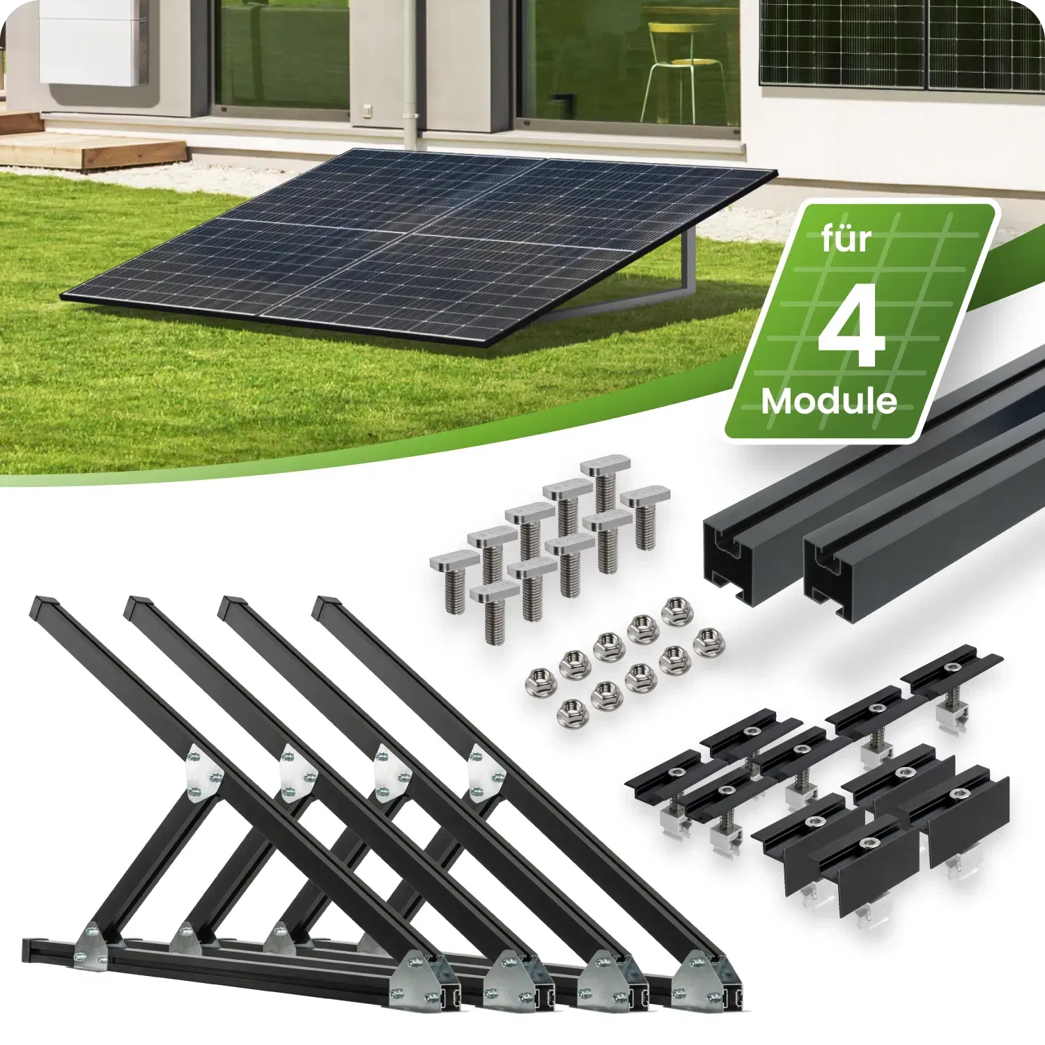 Das Flachdach- und Wandmontageset bietet eine stabile und flexible Lösung zur sicheren Befestigung von Solarmodulen. Es eignet sich sowohl für private als auch für gewerbliche Anlagen, bei denen eine präzise Ausrichtung auf die Sonne entscheidend ist. Durch den einstellbaren Neigungswinkel von 3° bis 45° lässt sich die Konstruktion optimal an unterschiedliche Standorte, Dachformen und Ausrichtungen anpassen. Das Montagesystem besteht aus hochwertigem, korrosionsbeständigem Aluminium (AL6005) und Edelstahl (SS304) und gewährleistet so eine dauerhafte Beständigkeit gegen Witterungseinflüsse. Die vormontierten Schienen und Klick-Klemmen ermöglichen eine besonders schnelle und einfache Installation – ideal für Flachdächer, Carports, Garagen oder Wandmontagen.