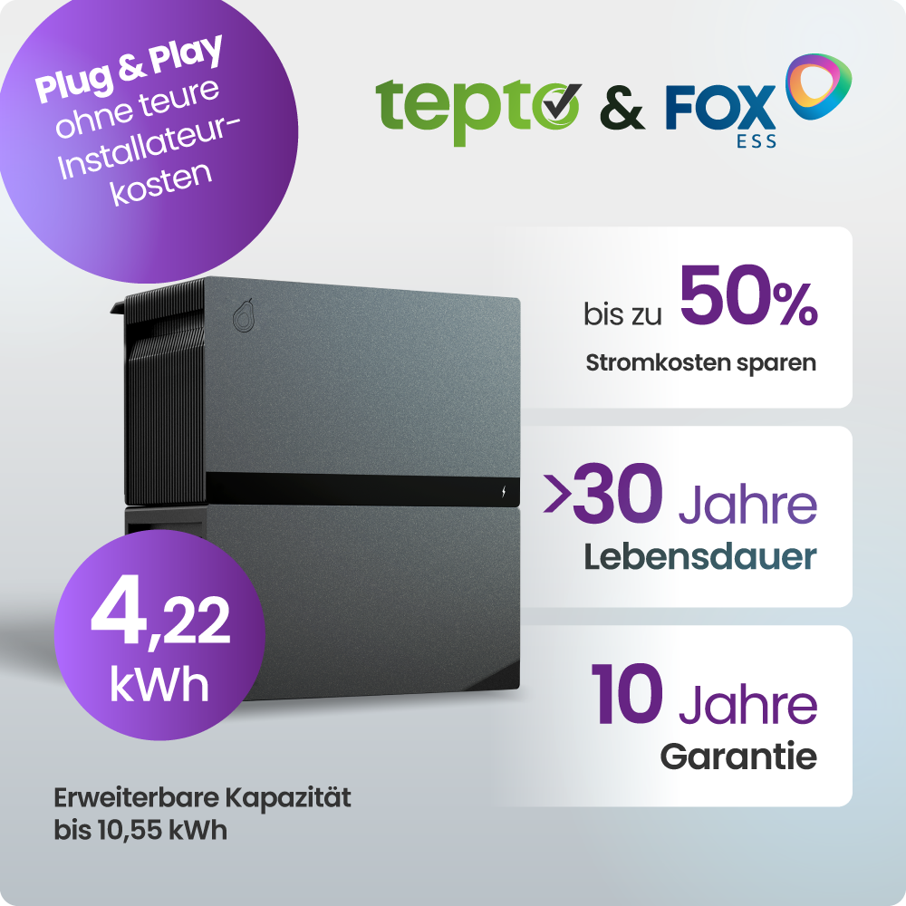 Tepto 2000W Balkonkraftwerk MaxPower mit 4,22 kWh Speicher FoxEss Avocado