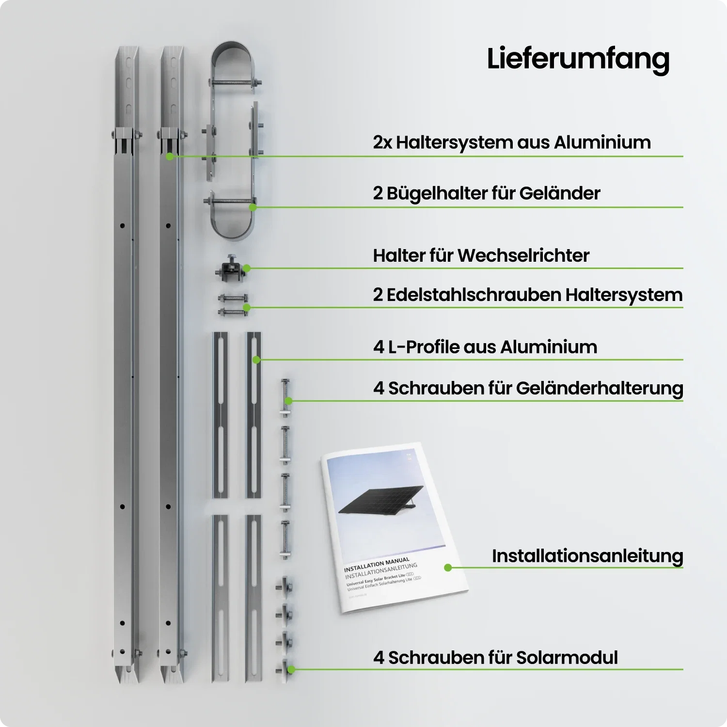 - Besonderheiten: vormontiert, Mikro-Wechselrichter montierbar